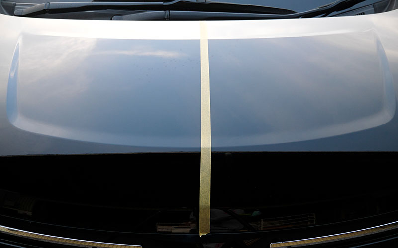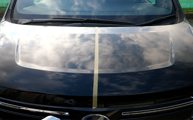続いて水弾き効果を見たいので、ボンネットに半分ずつ施工していきます。