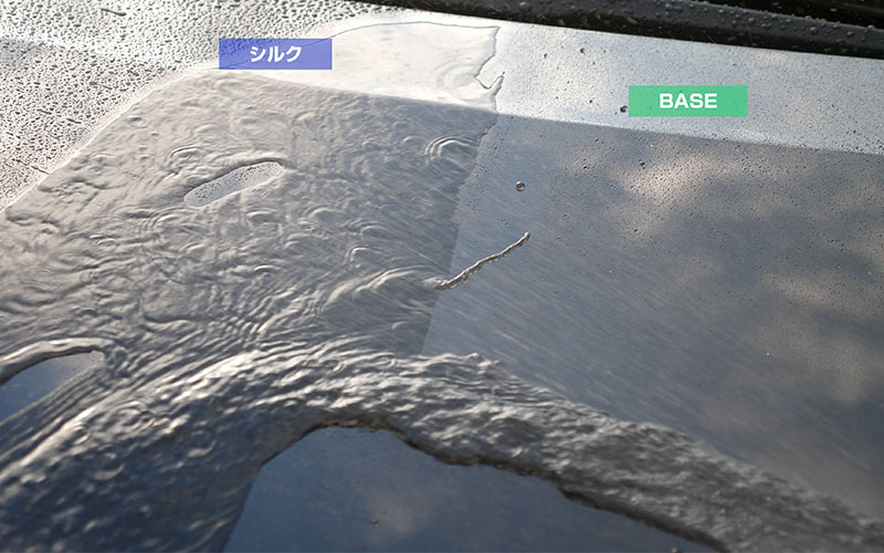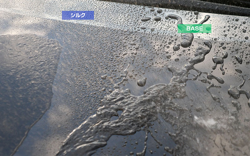 シルクは大量に水をかけると水が引いていくので水残りが少ないです。洗車の時楽ですね。