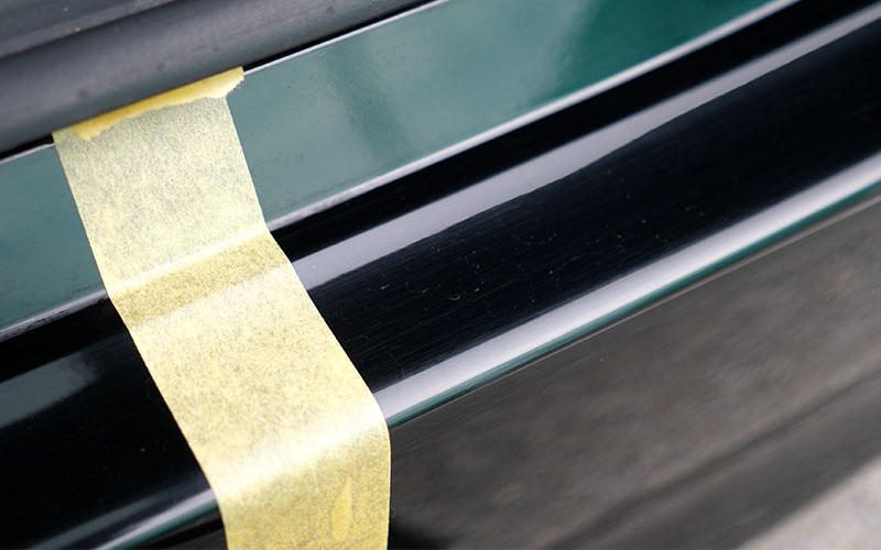 マスキングテープを剥がしました。艶が出て傷が目立たなくなっています。