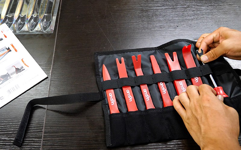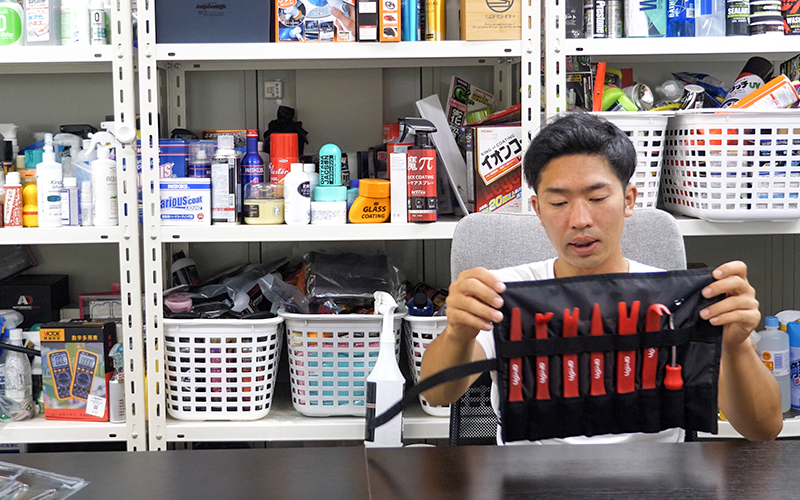 新商品として『内張りはがしセット』の中を確認すると、1つ1つ違った特徴を持つ内張りはがしが入っているようでした。