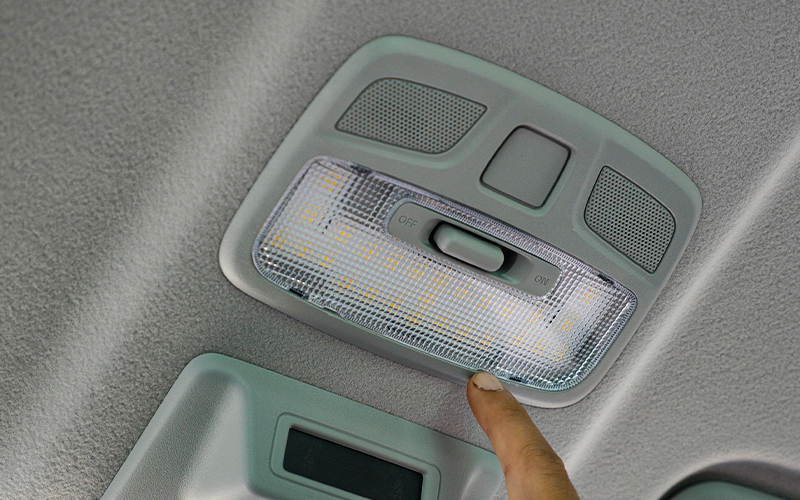 少し前の車だと、押して点くタイプのランプがあったと思います。
