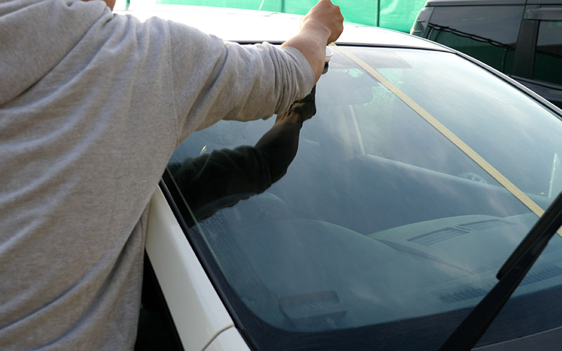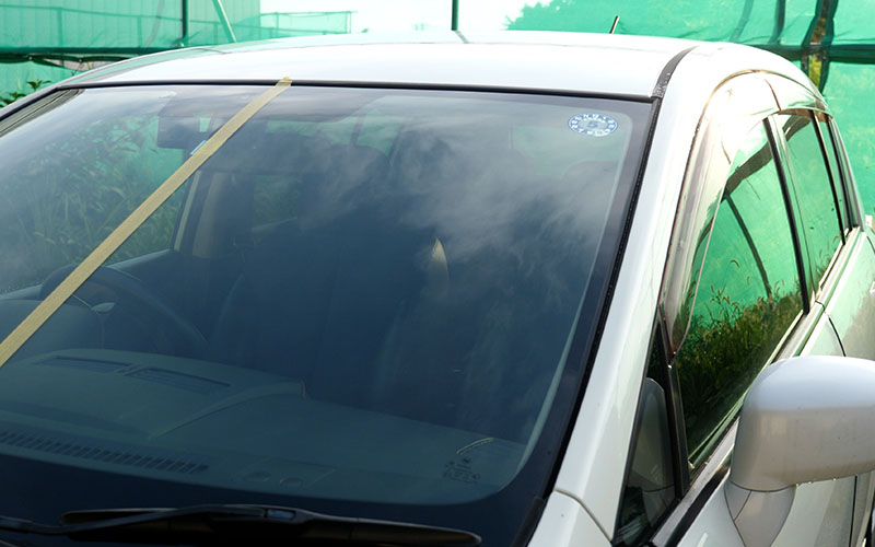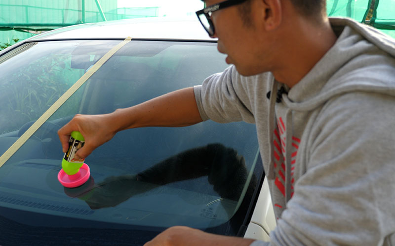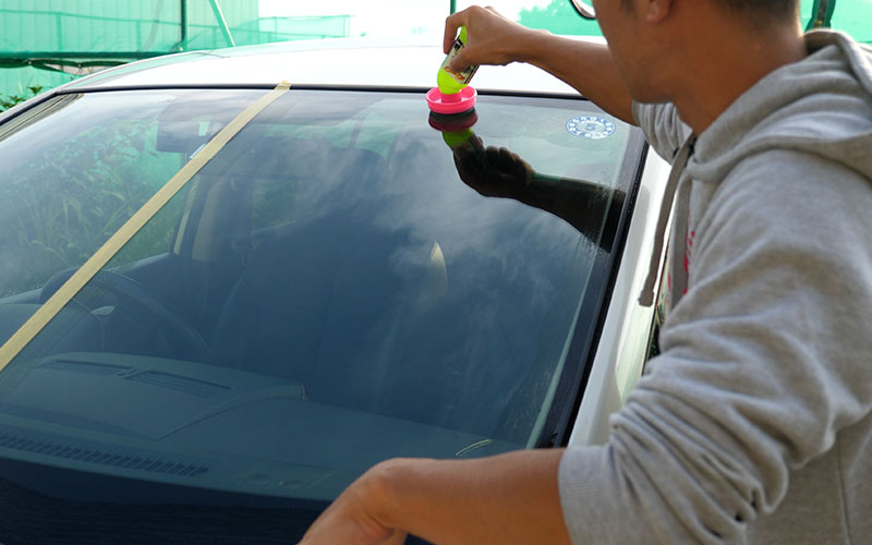 施工が終了したのであとは乾くのを待って拭き上げるだけです。その間に反対側にカインズの『ガラス用コーティング剤』を施工していきます。