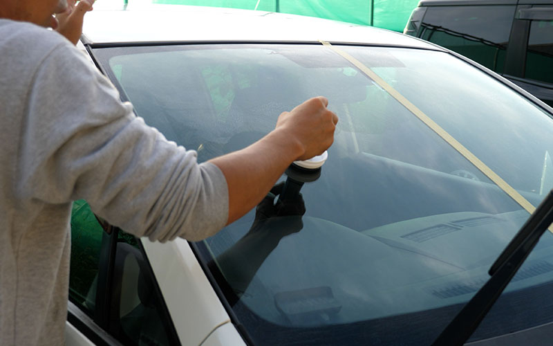1回拭いただけだとムラになるので面を変えてさらに拭いていきます。広い面は簡単に拭けるんですが、結構端の方は撥水剤が溜まりやすいからか、綺麗に拭きあがりません。