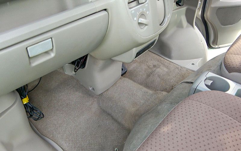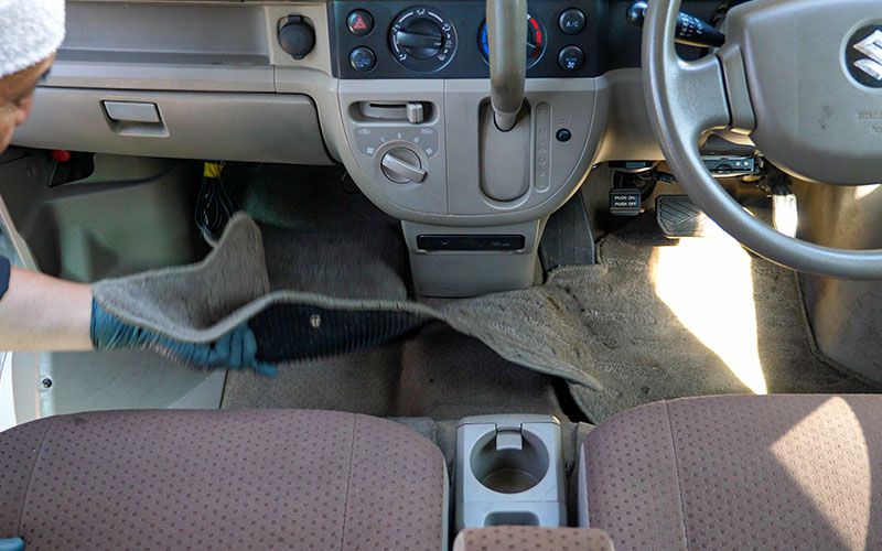 しのピー:まずは掃除機をかけたいので、フロアマットをどかしましょう。