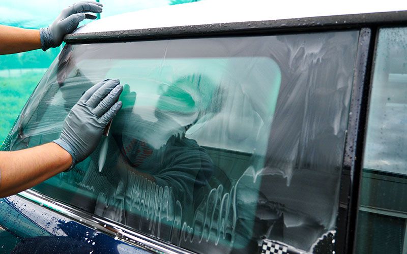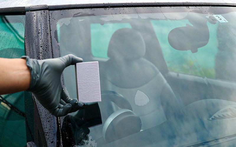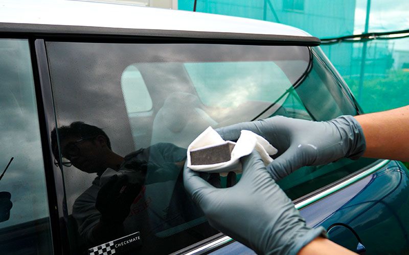 サイドガラスに『ガラコ コンパウンドクロス』と『水アカとりパッド』を施工