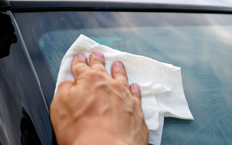 ②適度なサイズに折りたたみ、液が弾かなくなるまでガラス面を磨いてください。