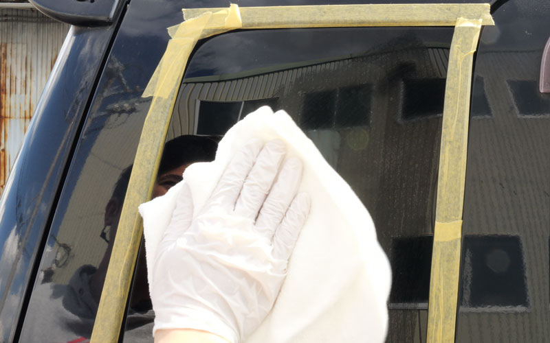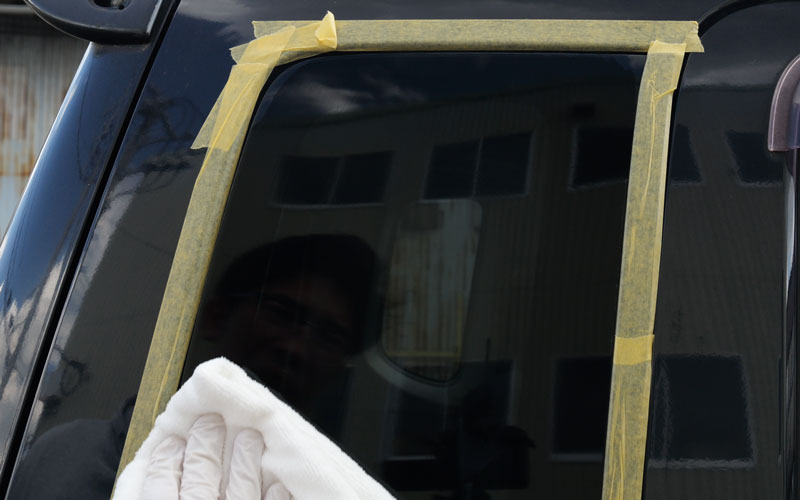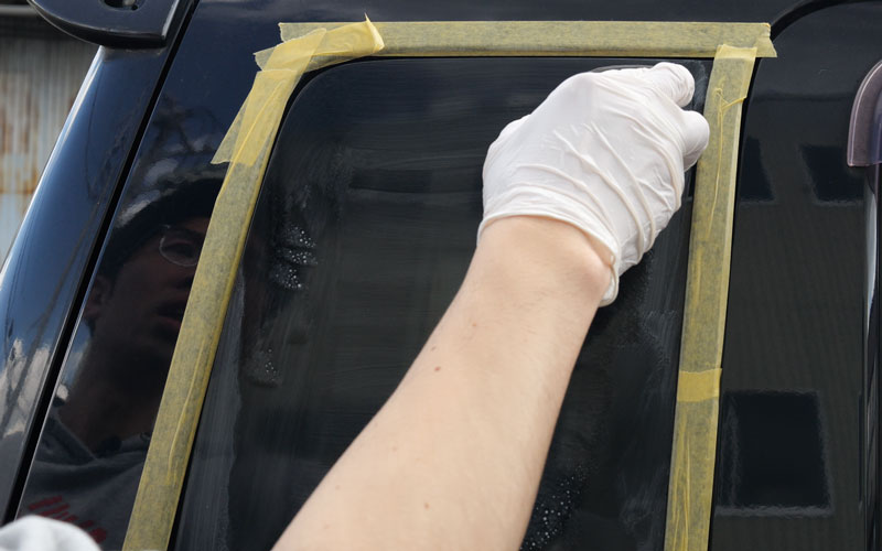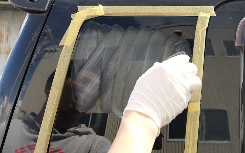 ● ガラスの角やフチを施工する場合、マスキングテープでフチ取りしてから施工してください。