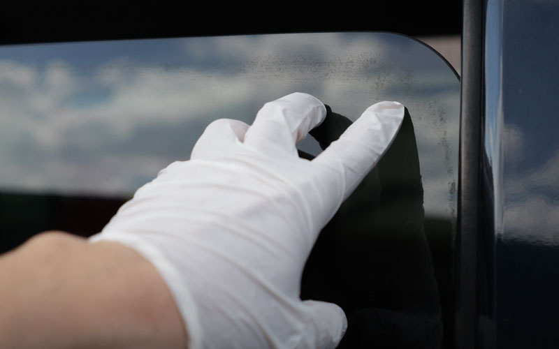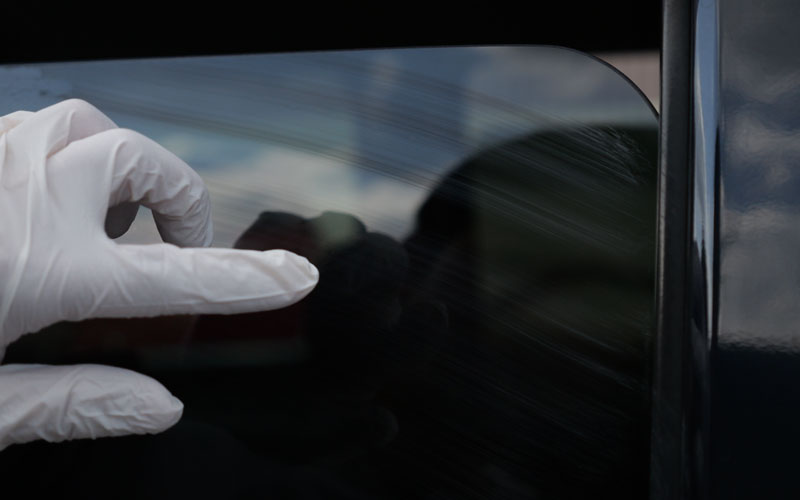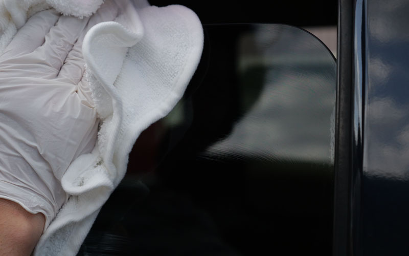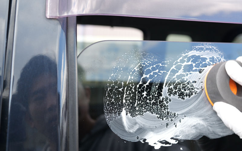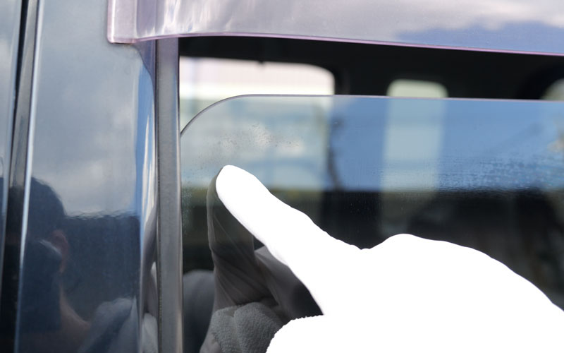 ① キズの原因になりますので、ガラス面についている砂やホコリ、泥汚れ等を水できれいに洗い流すか、濡れタオル等できれいに拭き取って下さい。