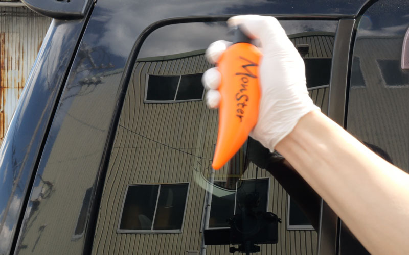 レインモンスターリセットは液剤をパッドに付けてガラス面を擦っていくので、ガラス面に砂が付着した状態だとガラスに傷付く可能性があるので砂はしっかり取り除いてください。