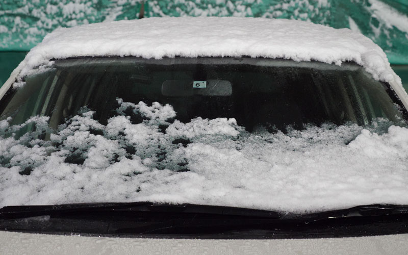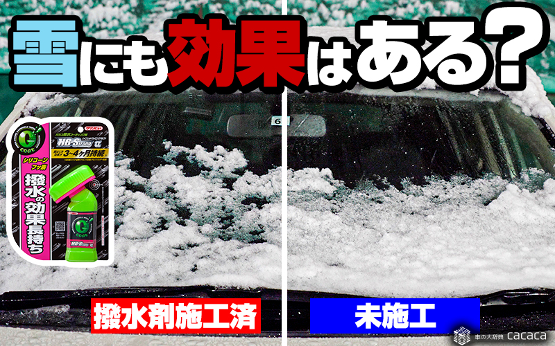 雨ほどではないですが、走行時は撥水剤を施工している方が雪がちょっと付きづらい。雪がガラスに付着した後、溶けて水になるじゃないですか?