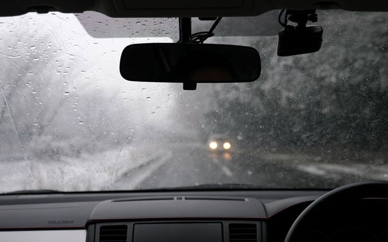 こちらは下道(低速走行)を走行した時の映像です。低速走行時は速度が出ていない分、ガラス面に雪が付着しやすいです。