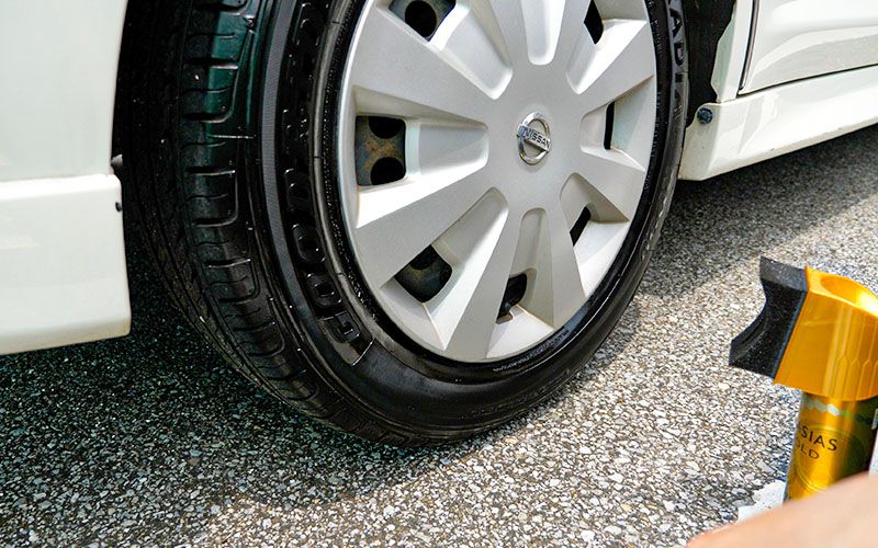 『グラシアス ゴールド タイヤコーティング』を施工する