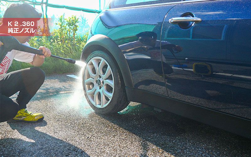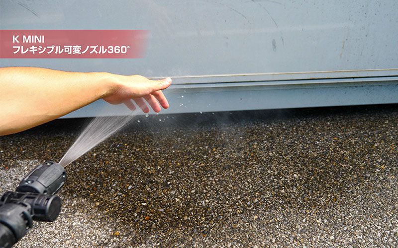水圧が強いと車の下に入れた後の戻り時や跳ね返りでボディを傷つけてしまう可能性が高いし、片手での操作は圧倒的に『K MINI』の方が良いと思います。