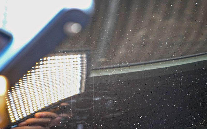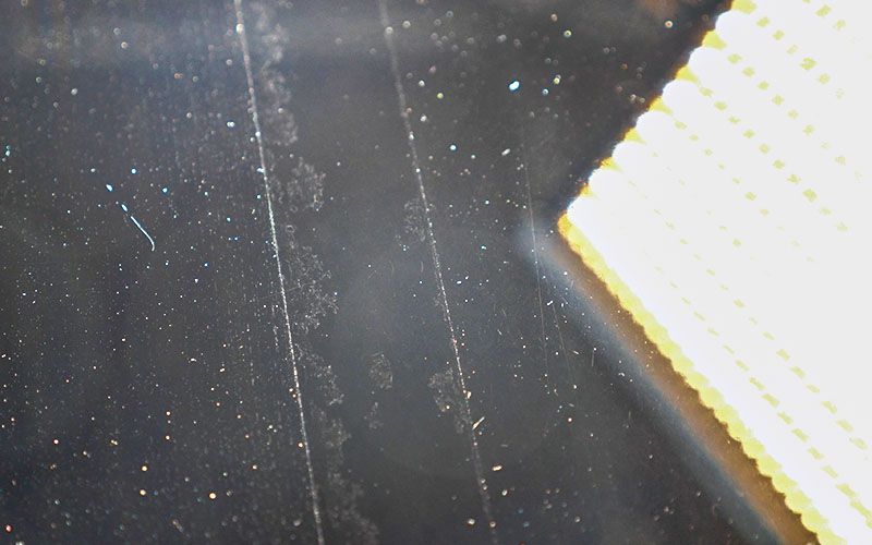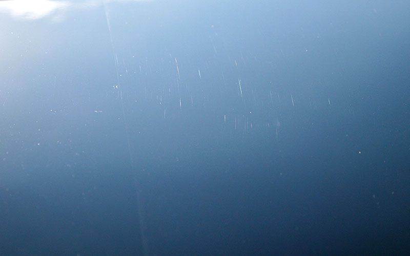 パッと見は綺麗ですが、光を当てると縦の線傷がよくわかります。