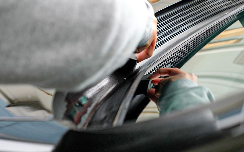 ボンネットの未塗装樹脂部分が白っぽいので施工していきます。
