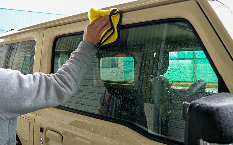 ③コーティング剤をムラなく塗り込んだ後、タオルで表面に残ったコーティング剤を拭き取る