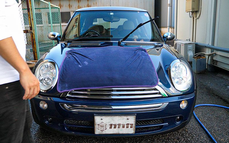 『シルクドライヤー』のMサイズでミニ全体を拭き上げていきます。