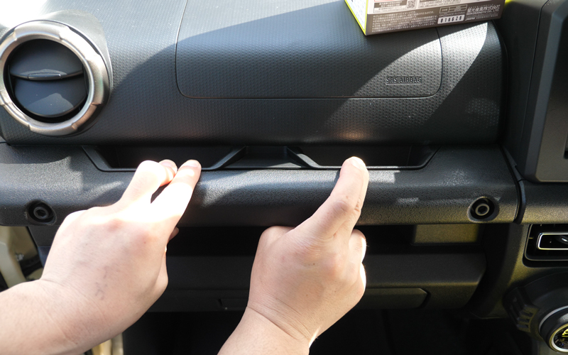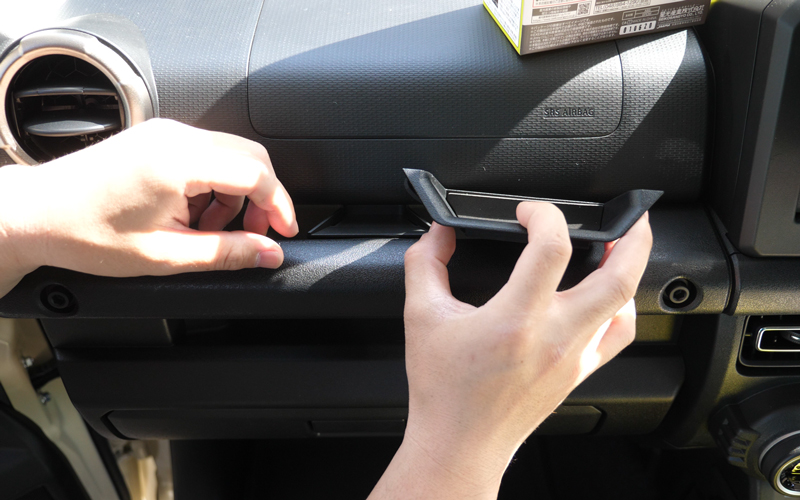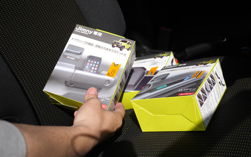 これはドアグリップをポケット化する商品になります。ジムニーはドアポケットではなくドアグリップなので、こういった商品を探している人も多いと思います。