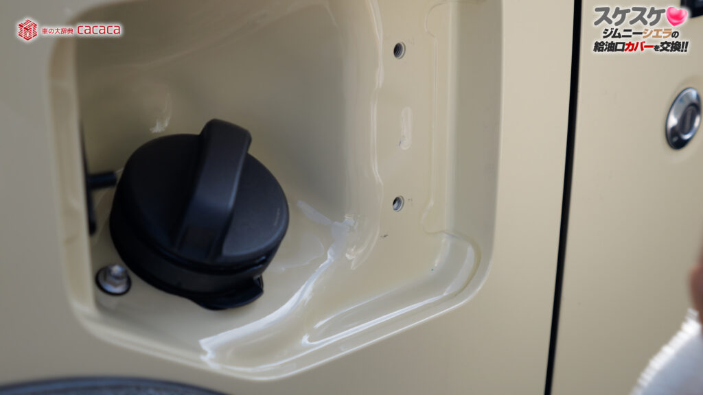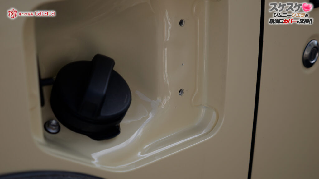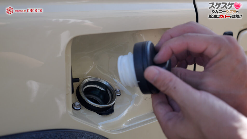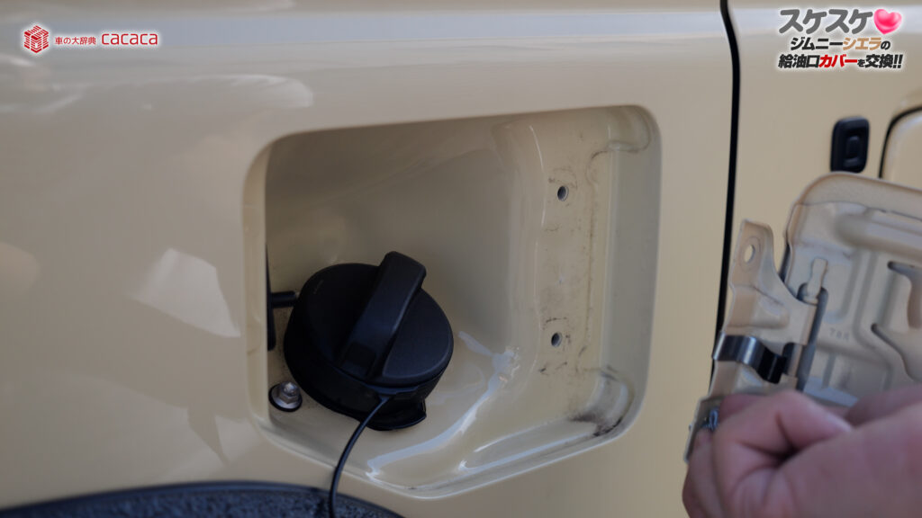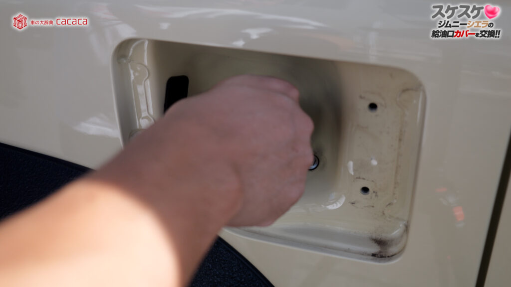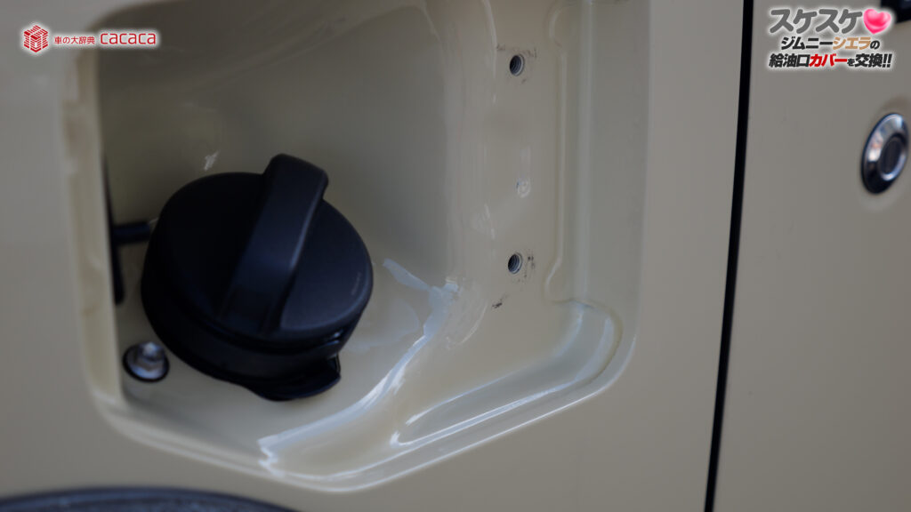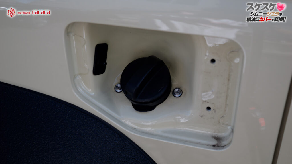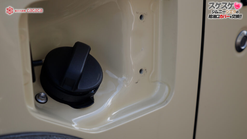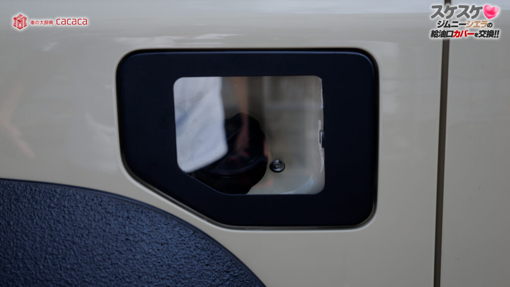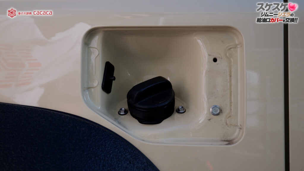 今回はこちら。ジムニーシエラの給油口の蓋ですね。これを純正から透明のものに交換してみました。