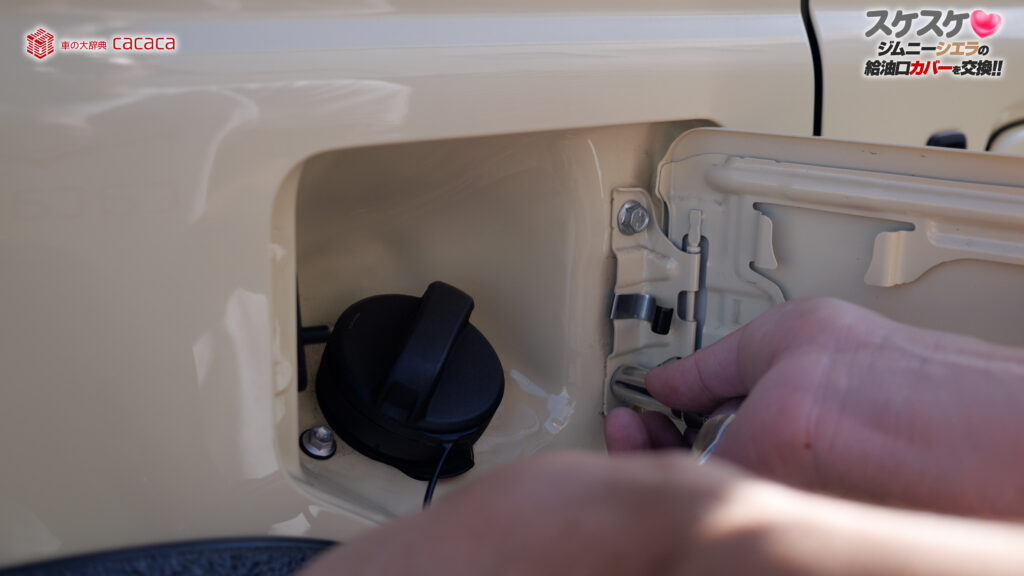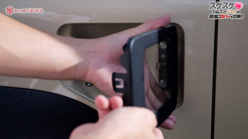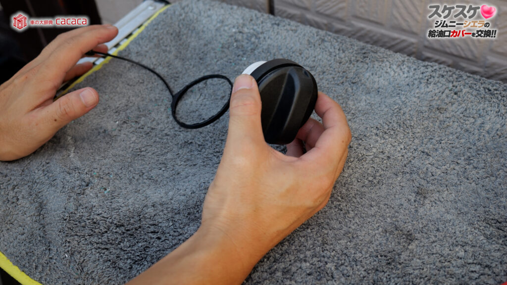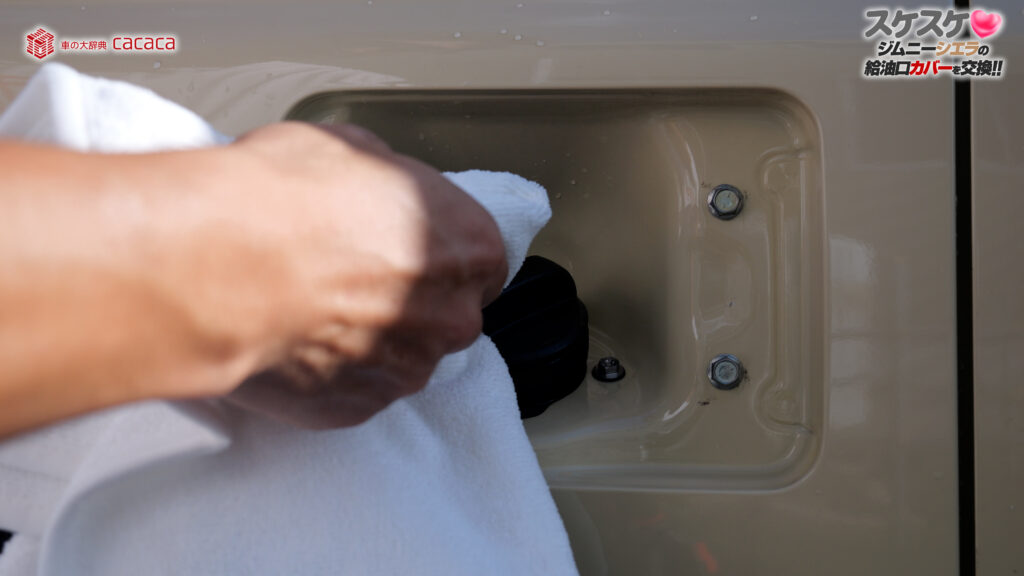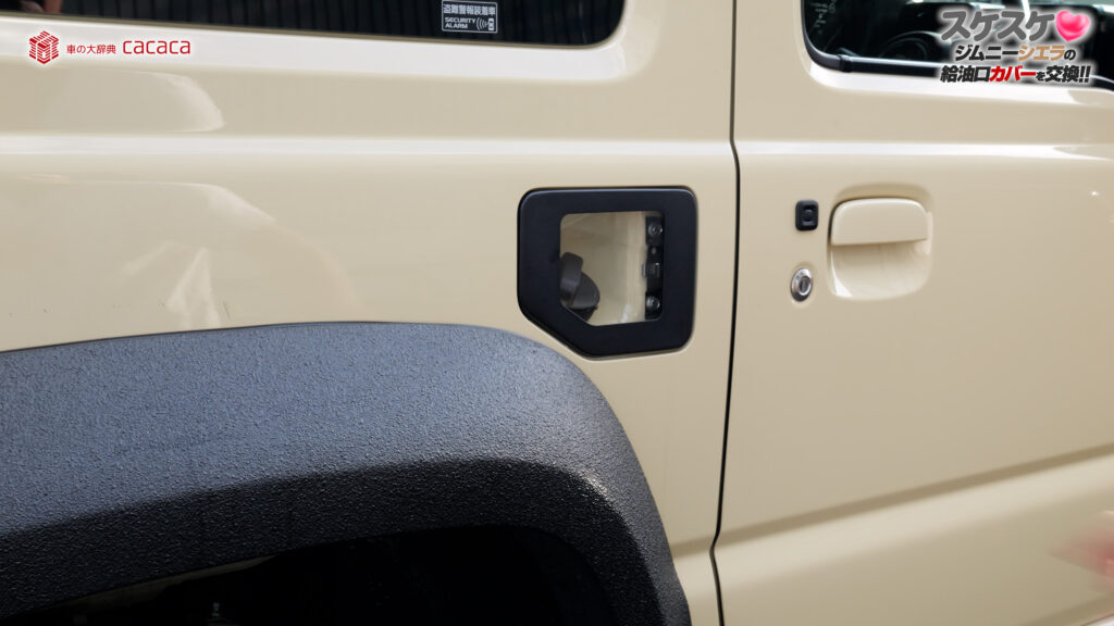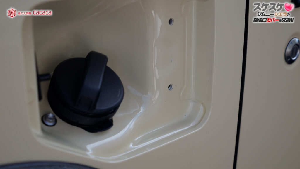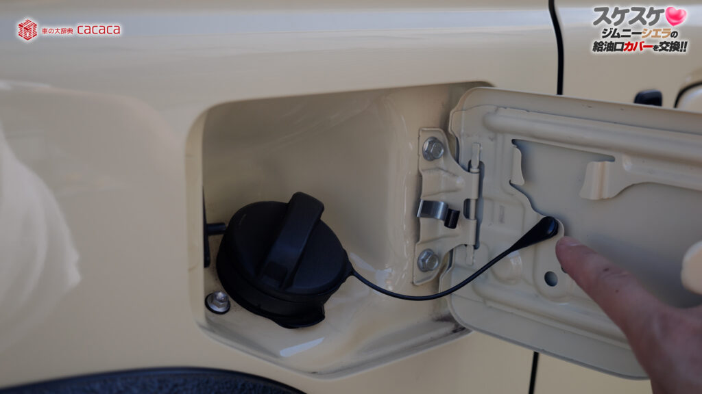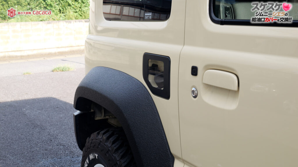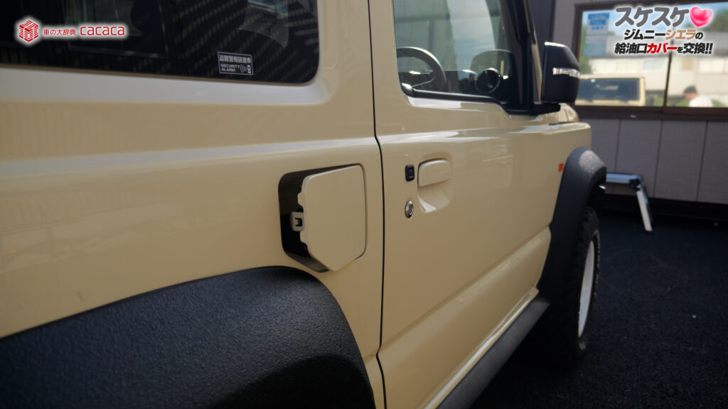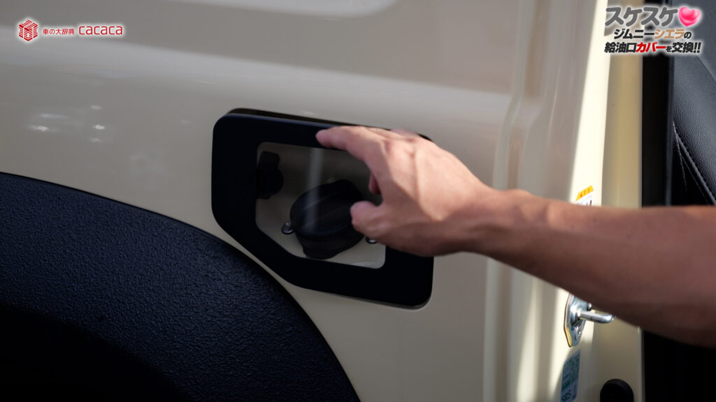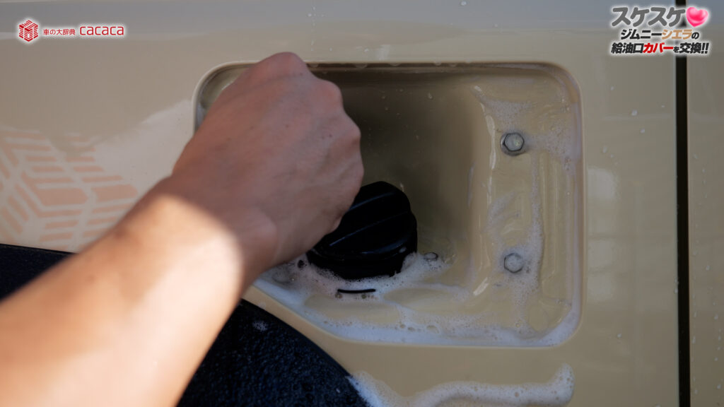 今回はこちら。ジムニーシエラの給油口の蓋ですね。これを純正から透明のものに交換してみました。
