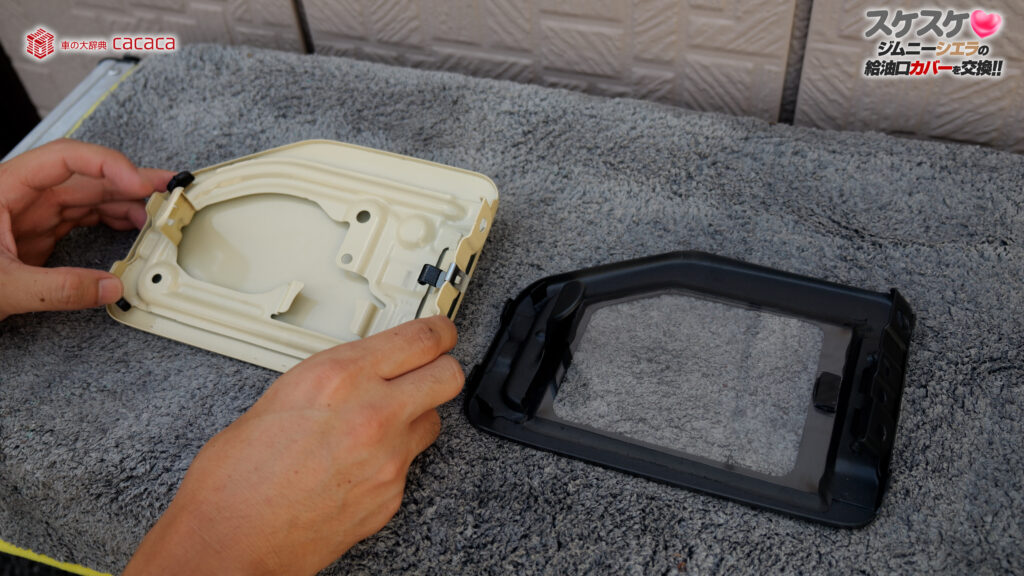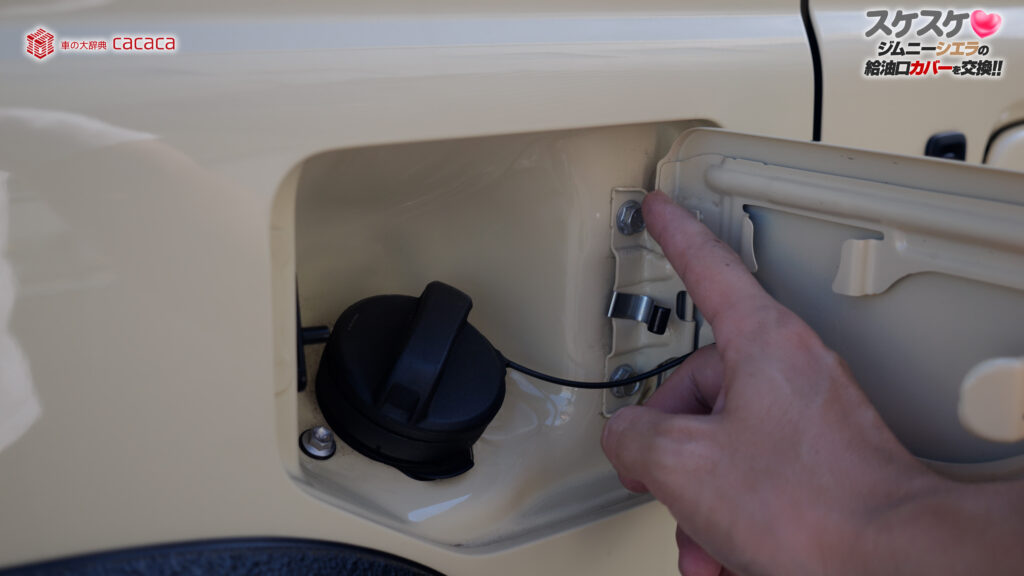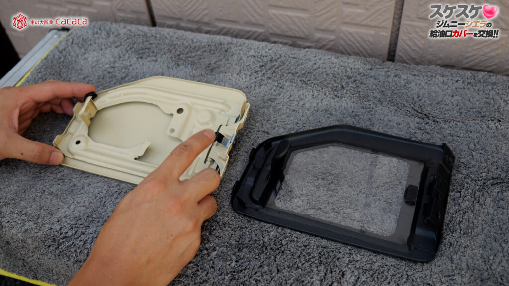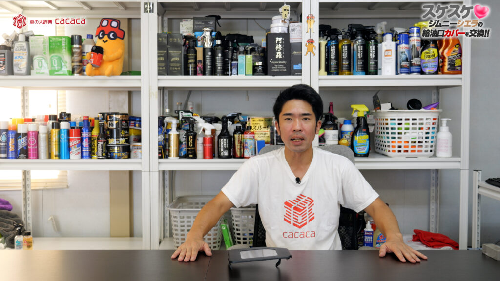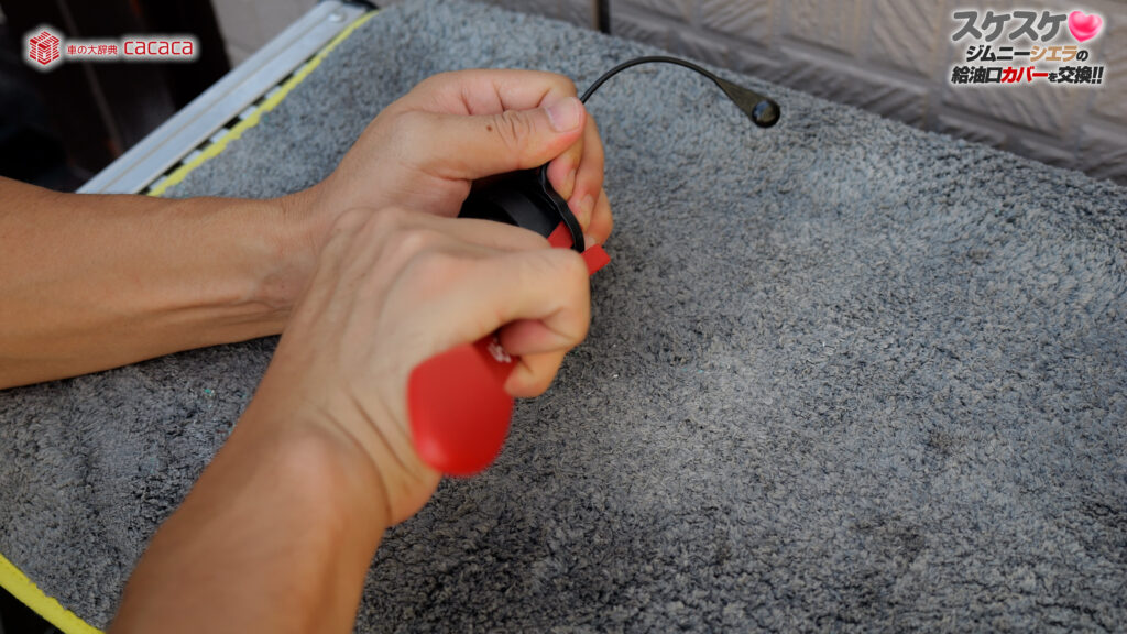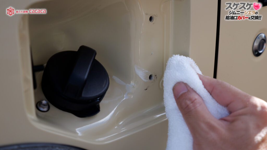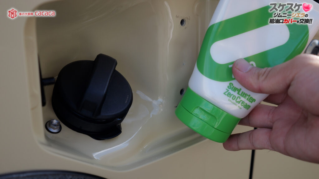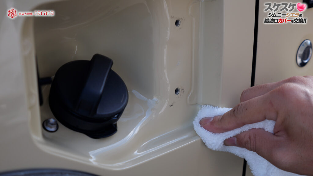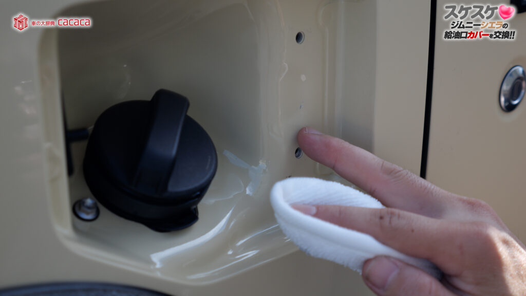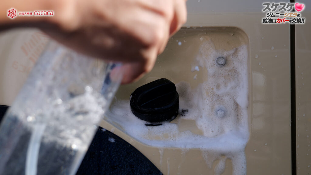 今回はこちら。ジムニーシエラの給油口の蓋ですね。これを純正から透明のものに交換してみました。