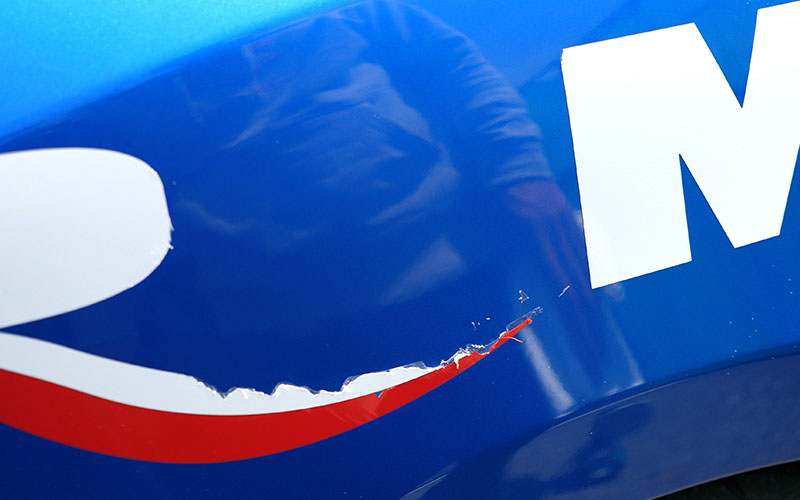 このHKSのステッカーは綺麗に剥がれたんです。まだ残っているところがあるので剥がしてみましょう。反対側はヒートガンで楽々綺麗に剥がせたんです。