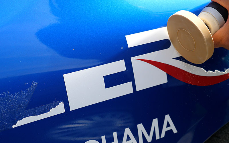 おそらくノリが伸びて白くなっているので、塗装が削れているということではないと思うんですが…。一旦コンパウンドで磨いてみます。