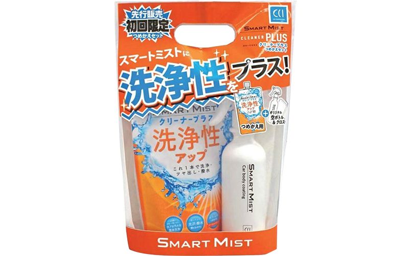 こちらは過去に紹介した『スマートミスト』に洗浄効果をプラスしたコーティング剤で、クロスと液剤とスプレーボトルがセットになっています。