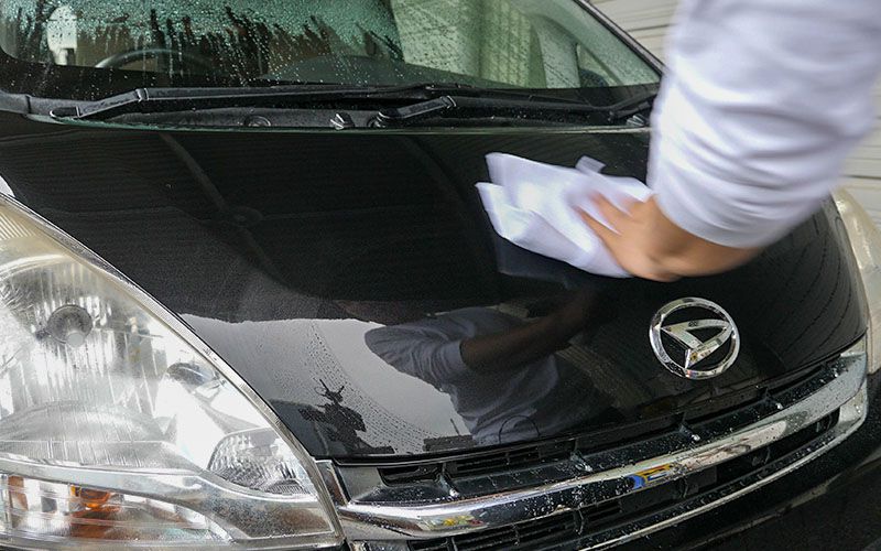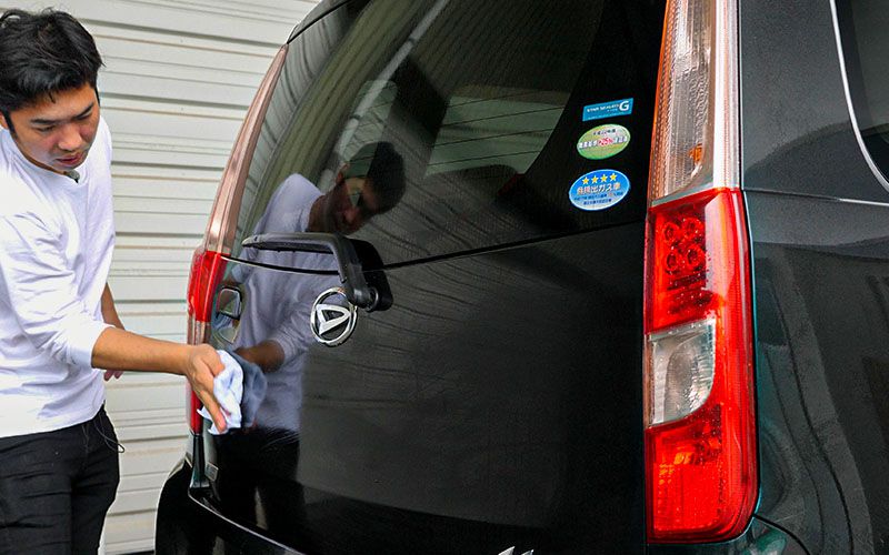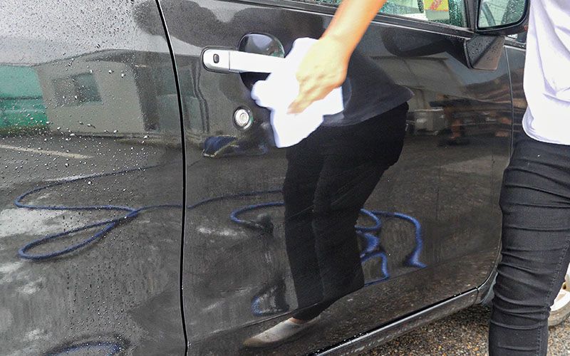 ①洗車をして汚れや砂を洗い流してください。