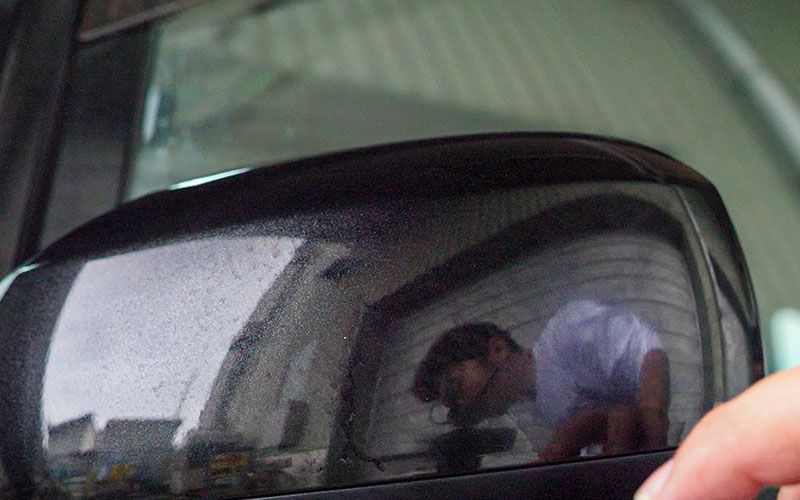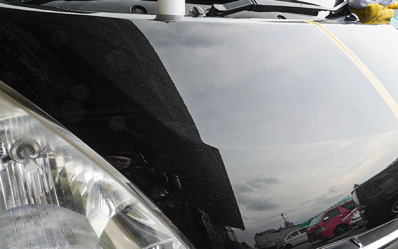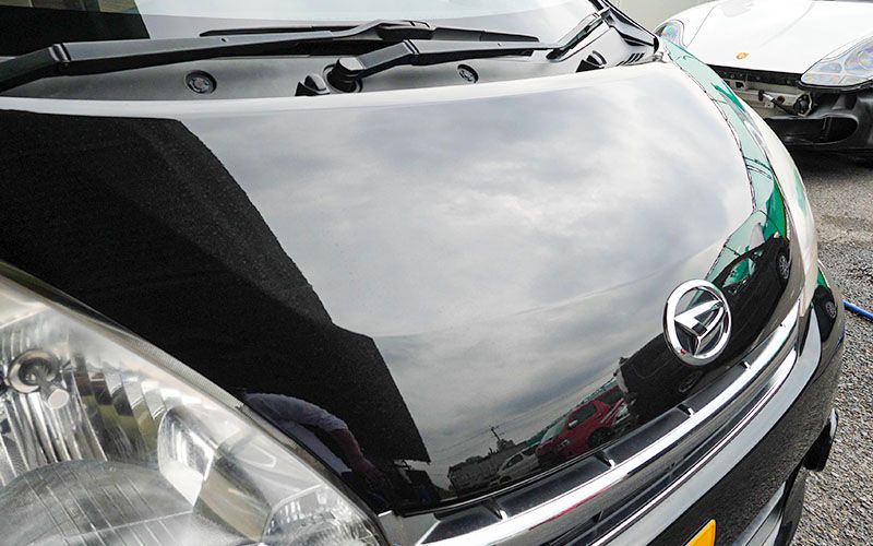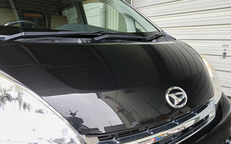 まずは黒い車に施工していきます。一応洗車をしたので、現状を確認します。