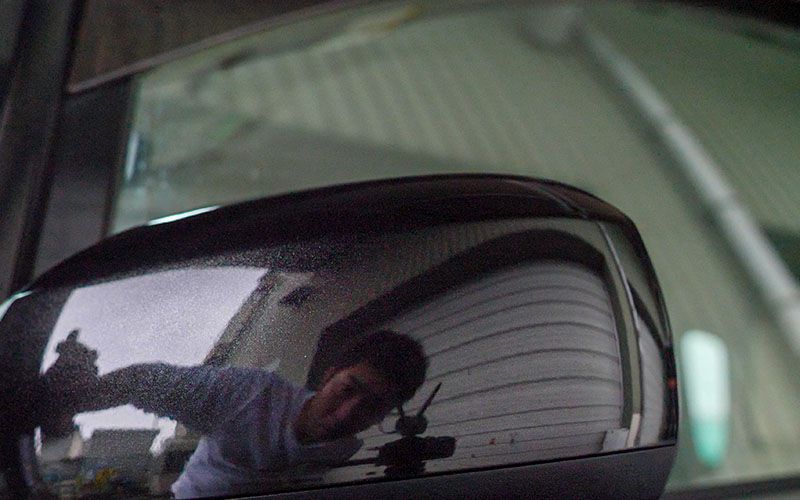 サイドも施工しました。『スマートミストクリーナープラス』はガラスにも使用できるので、バック全体に施工していきます。