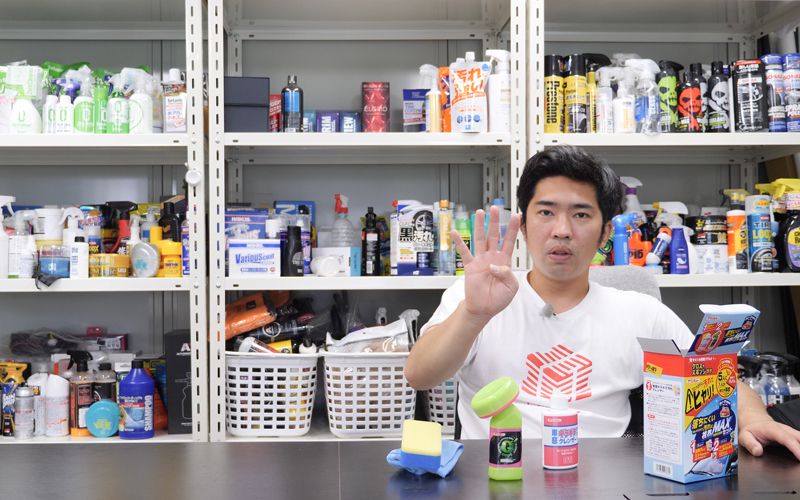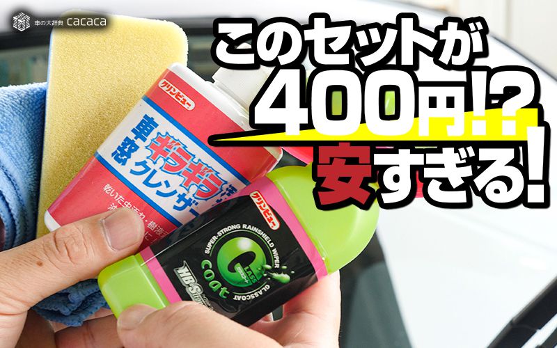 この商品は 『クロス』 『ハイブリッドストロング』 『油膜除去剤』 『スポンジ』がセットになっていて約400円!