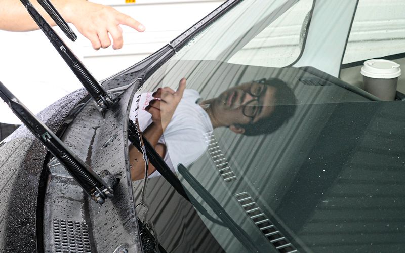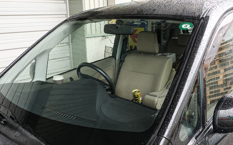 今回はダイハツ ムーヴに施工していこうと思いますが、過去に撥水剤を左側に『レペル』、右側に『ミストガラコ』を施工してあるので現状をお見せします。