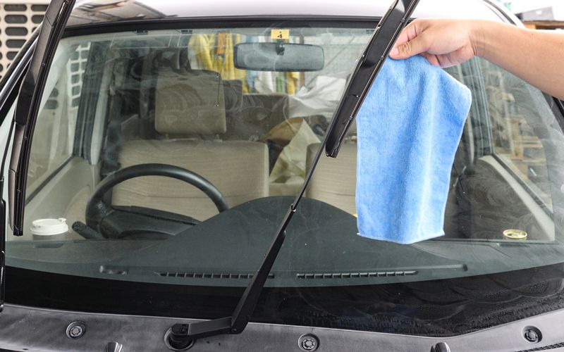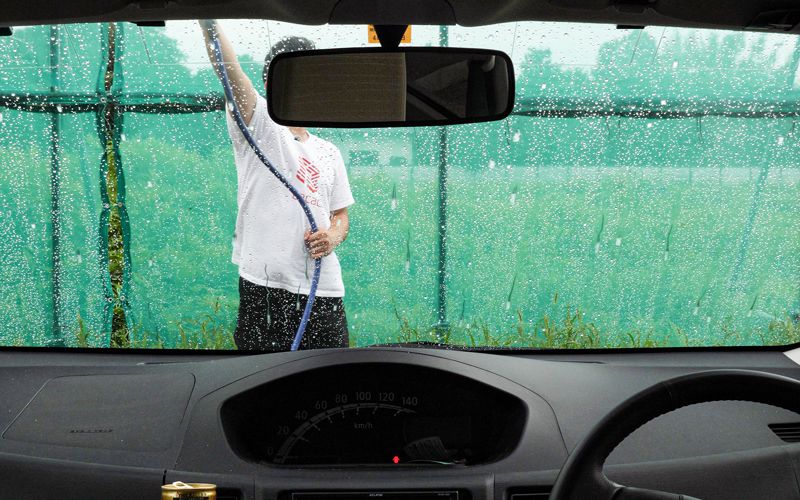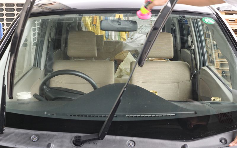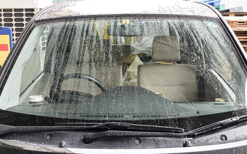 ※この時に水はじく部分は油膜等が完全に除去できていませんので、その部分だけ再度作業してください。水洗いが不十分だと乾いたあとが白く残ることがあります。窓枠の隙間に付いた場合は、歯ブラシ等で落としてください。