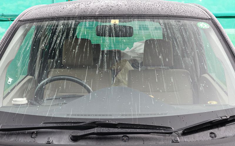 今回はダイハツ ムーヴに施工していこうと思いますが、過去に撥水剤を左側に『レペル』、右側に『ミストガラコ』を施工してあるので現状をお見せします。