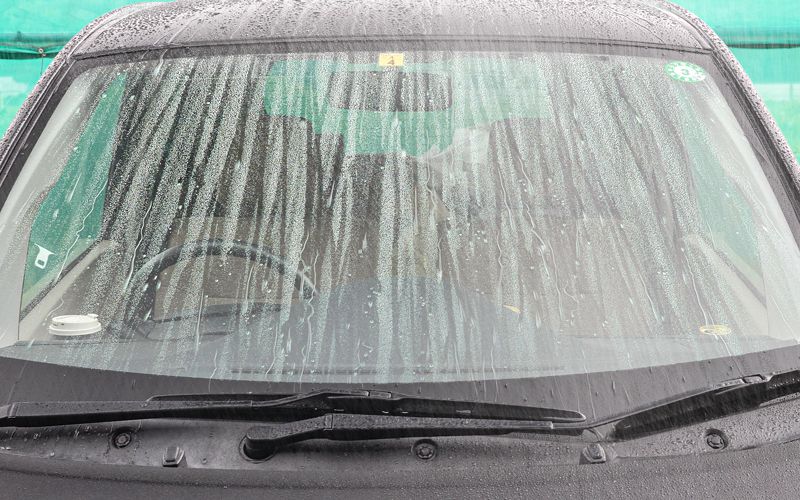 ※この時に水はじく部分は油膜等が完全に除去できていませんので、その部分だけ再度作業してください。水洗いが不十分だと乾いたあとが白く残ることがあります。窓枠の隙間に付いた場合は、歯ブラシ等で落としてください。