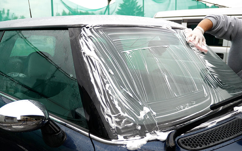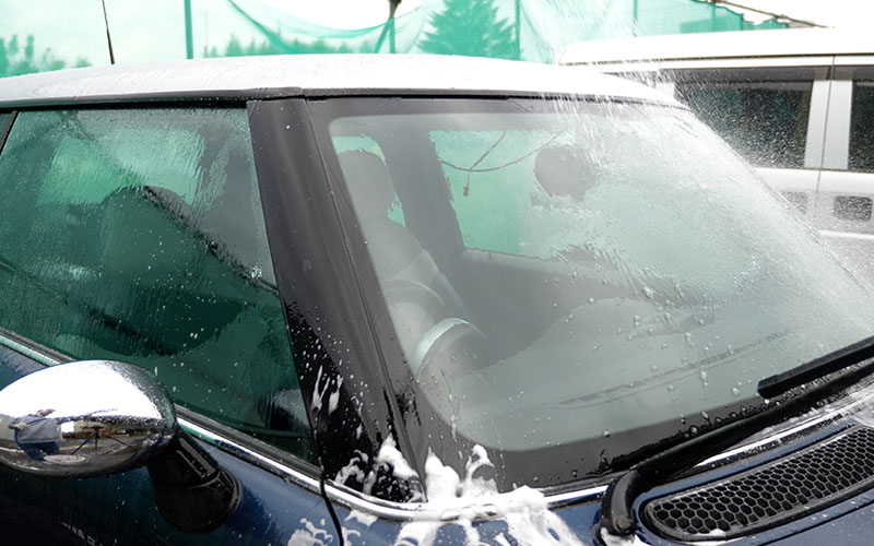 フロントガラスも洗っていきます。