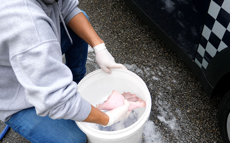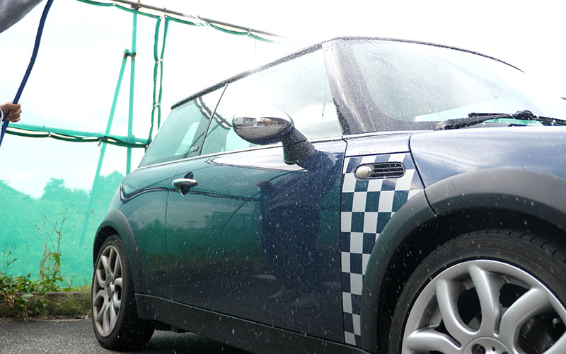 1.車の砂・ホコリ等を水で洗い流したら、