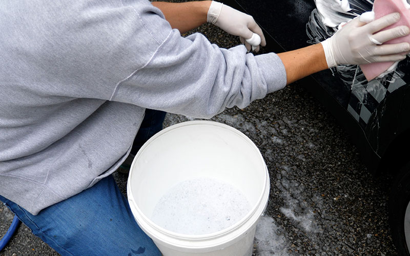 僕は普段カーシャンプー用のバケツと水のバケツを用意して洗っています。