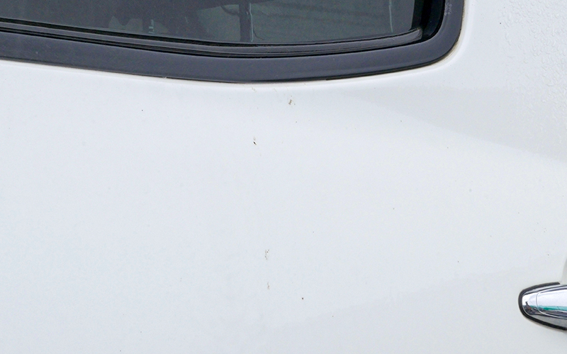 サイド部分の泥はね汚れに関しても、汚れは薄くなったのですが、すべての汚れを取り除くことはできませんでした。