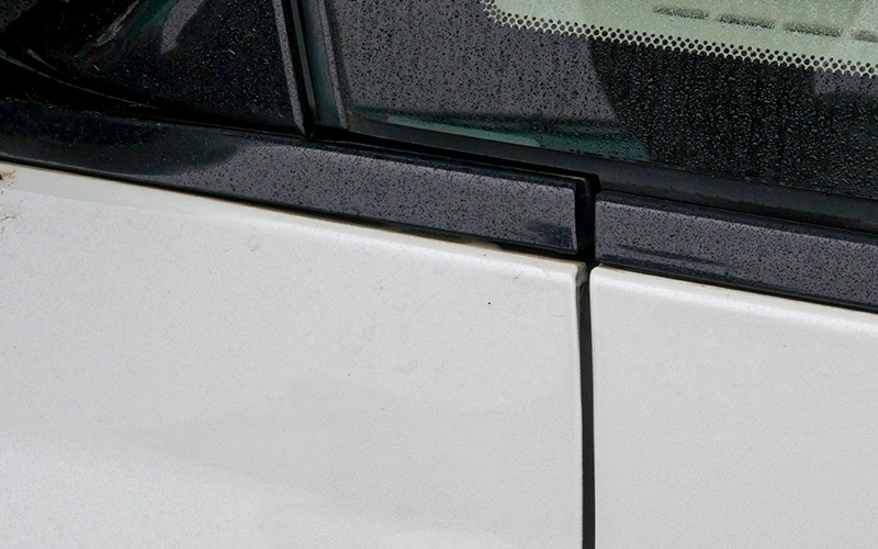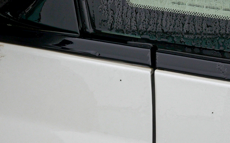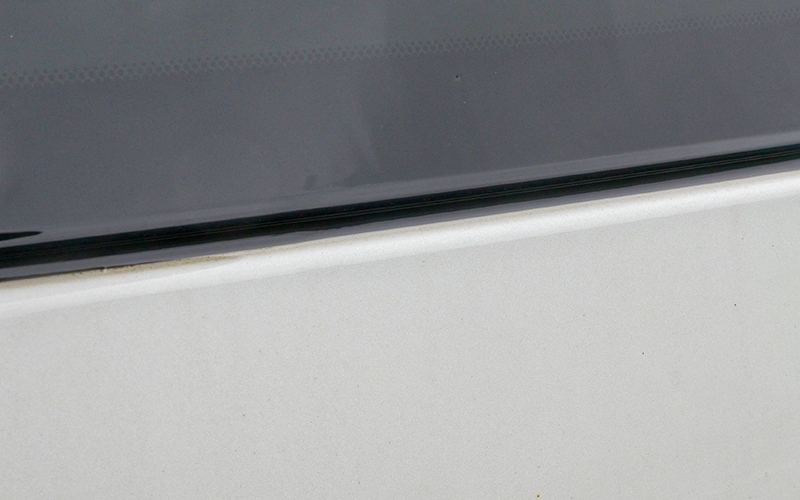 窓下のモール部分も洗浄してみました。泥汚れのようなものであれば、隙間に入ってしまった汚れも綺麗にすることができます。