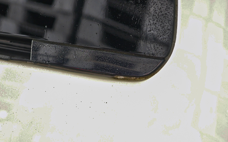 ECOモードで落ちなかった汚れに向けて、再度高圧洗浄機を使用してみたところ、先ほどまでは落ちなかった汚れも綺麗に落とすことが出来ました。ガラス周辺のくぼみに溜まった黒ずみも、綺麗に落とすことが出来ました。