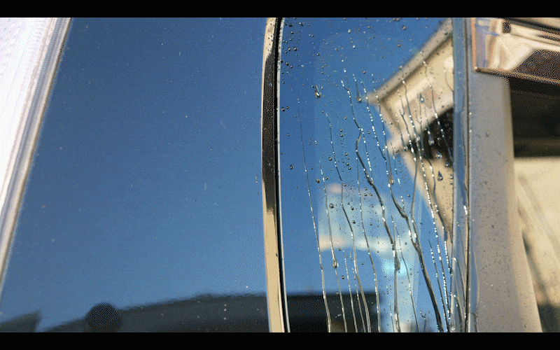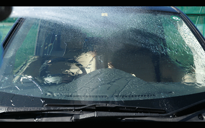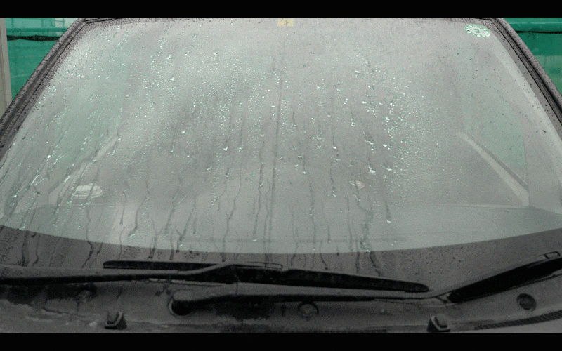抜群の水はじき効果が長時間持続します。38km/h以上の走行速度でガラスに付着した雨・水滴が吹き飛ばされるので(当社研究部門風洞実験より)、ワイパーなしでも快適な視界が得られます。