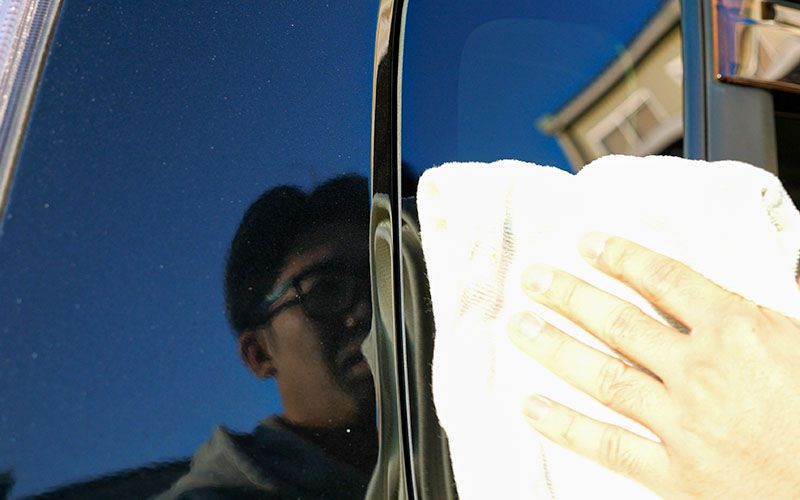 乾いたので拭き上げていきます。『ウィンドウ撥水12ヶ月』は撥水剤にしては珍しく、拭き上げに乾いたクロスを使います。