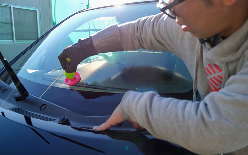 ①<ガラスコート(撥水剤)の塗布>