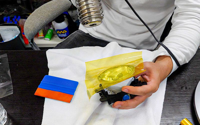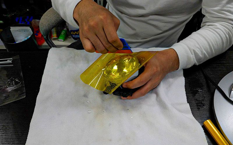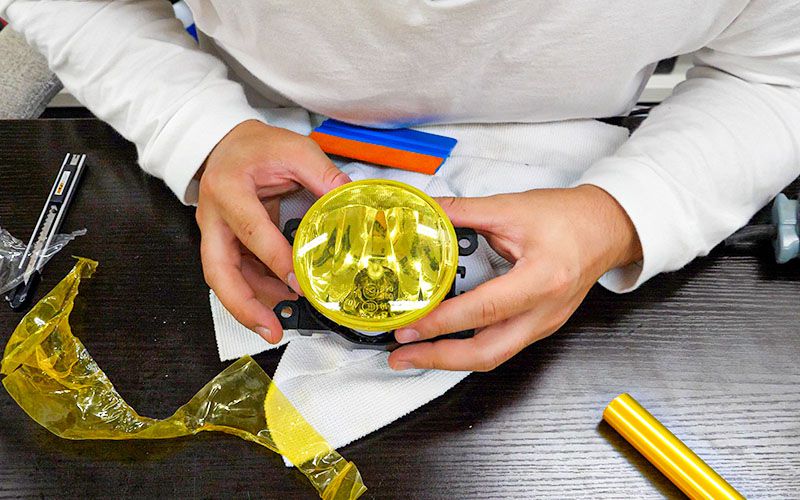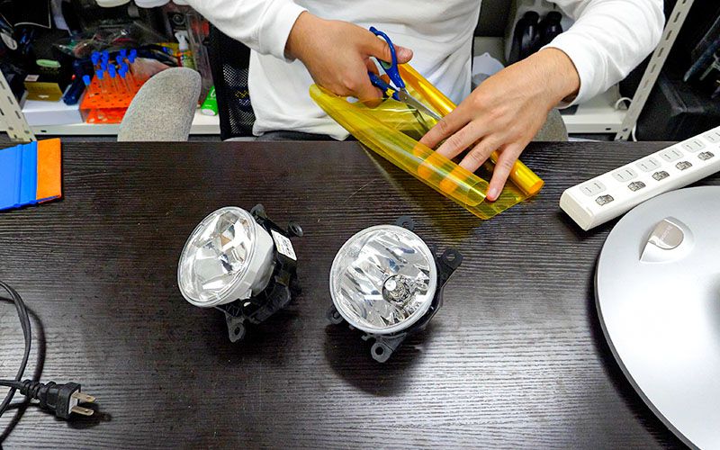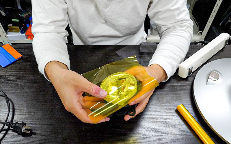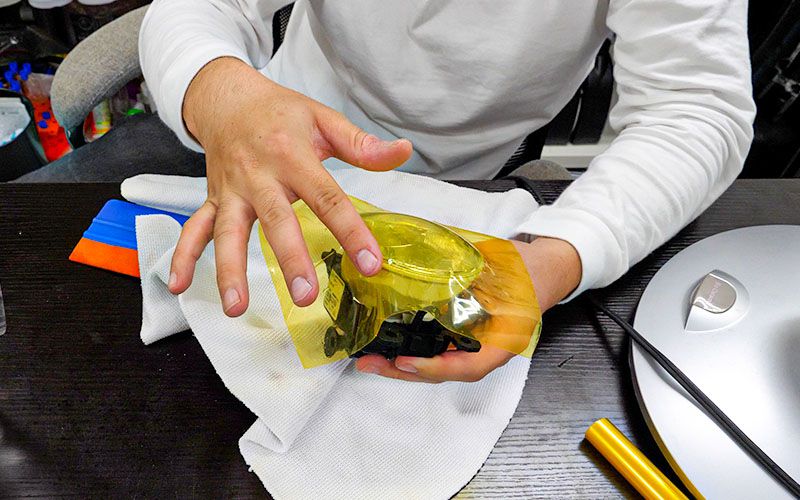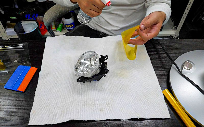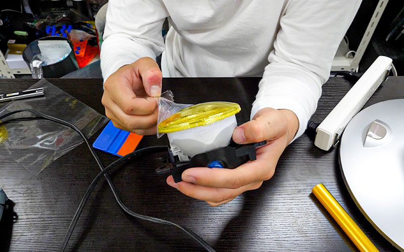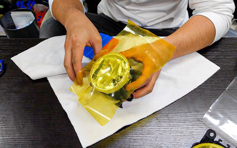 フォグレンズにフィルムを貼る