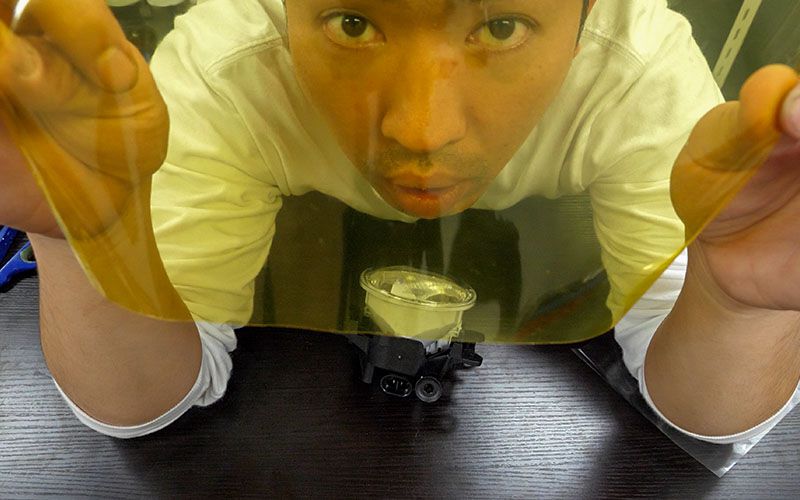 レンズは曲面があるので貼るのは難しいですが、中心からちょっとずつ貼っていけば何とかなると思っています。浅はかですが、フィルムは沢山あるし多分大丈夫。