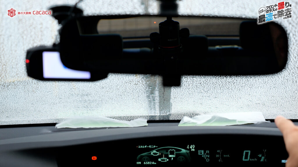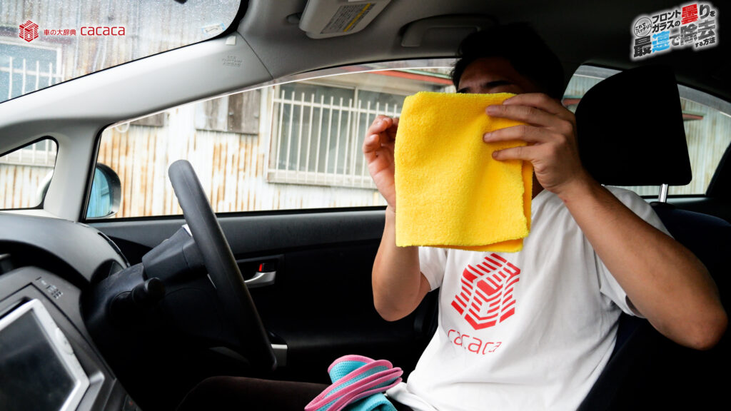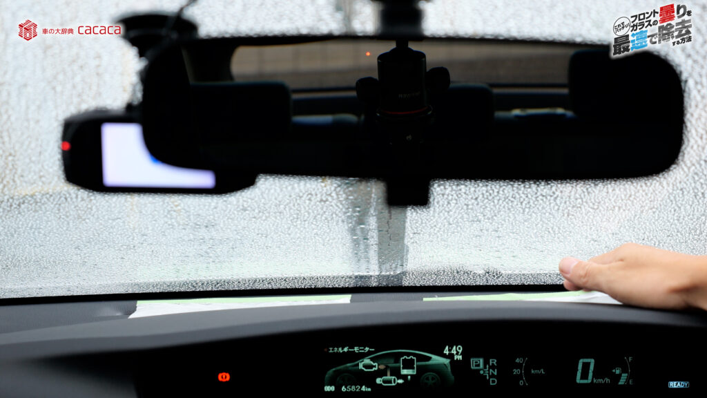 パッと見クリアでも汚れていたりして、フロントガラスの内側にホコリや油分が付着していると、そこに湿気がつきやすくなります。汚れが水分を吸収して曇りやすくなるので、定期的にフロントガラスの内側っていうのはお掃除した方がいいです。