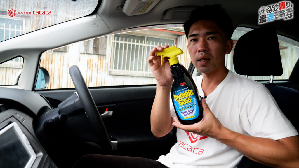 主な原因はこの3つなんですが、フロントガラスの汚れについてはガラスクリーナーで対処できます。