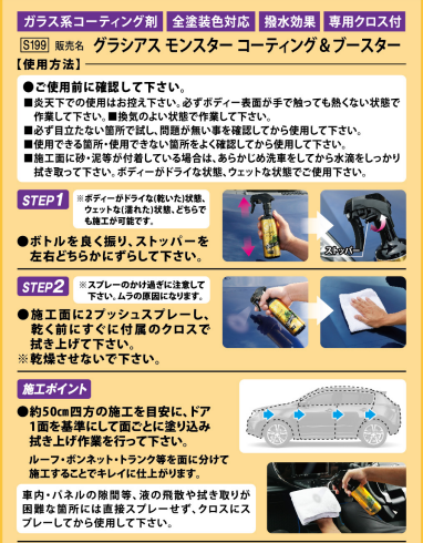 『グラシアス モンスター コーティング&ブースター』の使い方は上記の通りです。